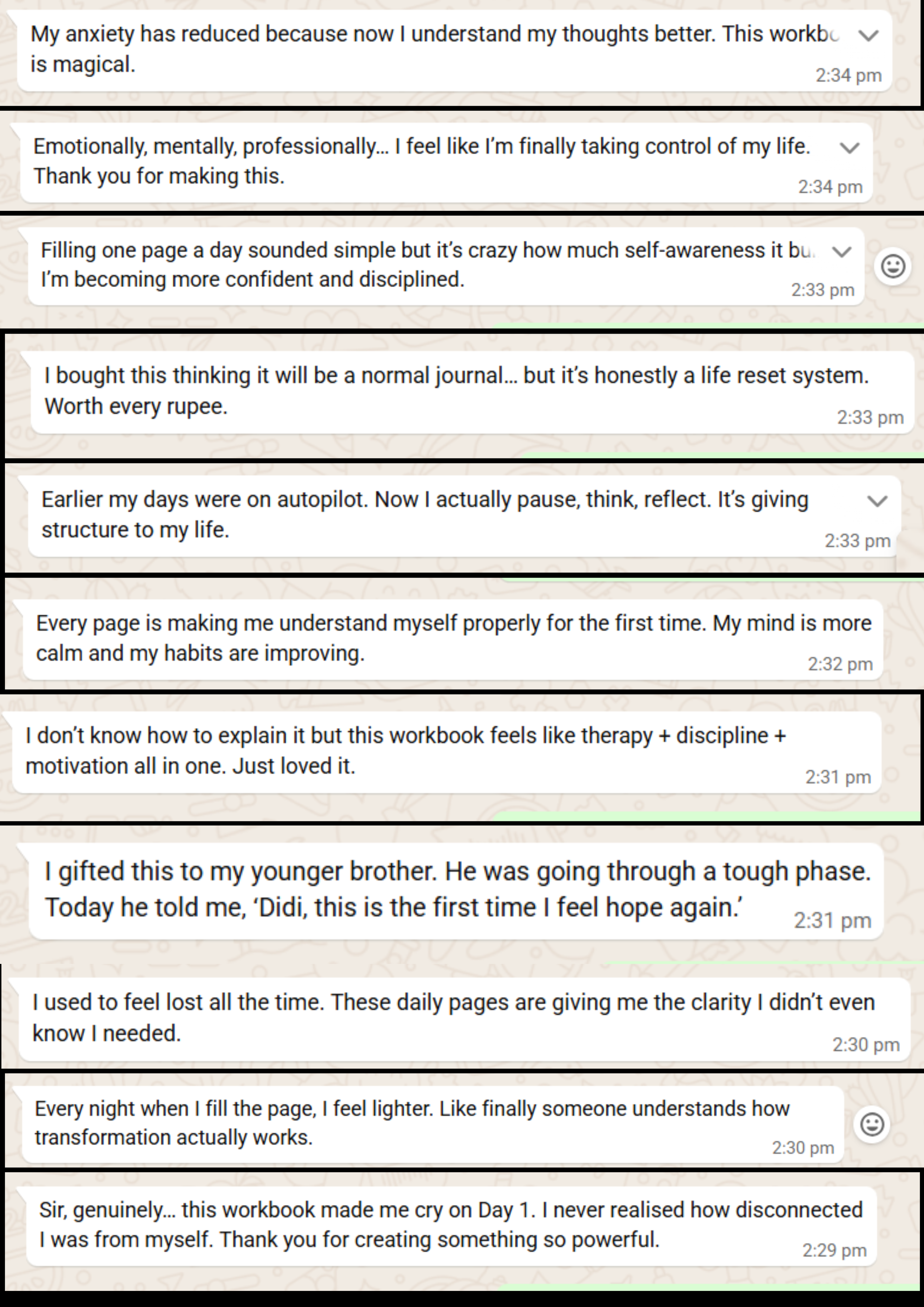 The 365 Growth Workbook is a full-year, step-by-step growth system designed to rebuild your discipline, clarity, mindset, habits, and emotional strengthone page per day.